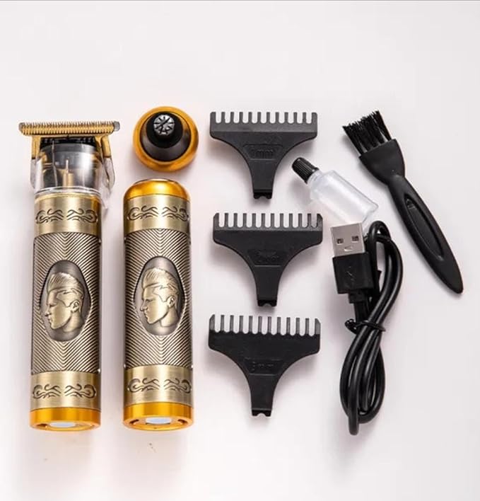 ماكينة الحلاقة الذهبية جاية باش تعطيك تجربة حلاقة مختلفة. سهلة فالمسكة، كتقصّ بدقة، وماكتجرحش البشرة. الشفرات ديالها قوية من الستانلس ستيل، والموتور خدام بنعومة بلا صوت زائد، والبطارية كتكمّل معاك النهار كامل وتشحن بــ USB بلا صداع.